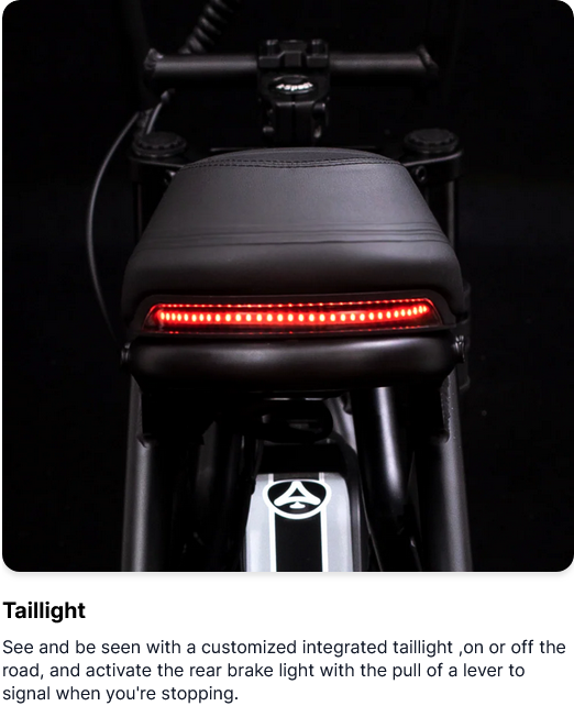 • 🪑 Integriertes Rücklicht im Sattel mit Bremsfunktion
