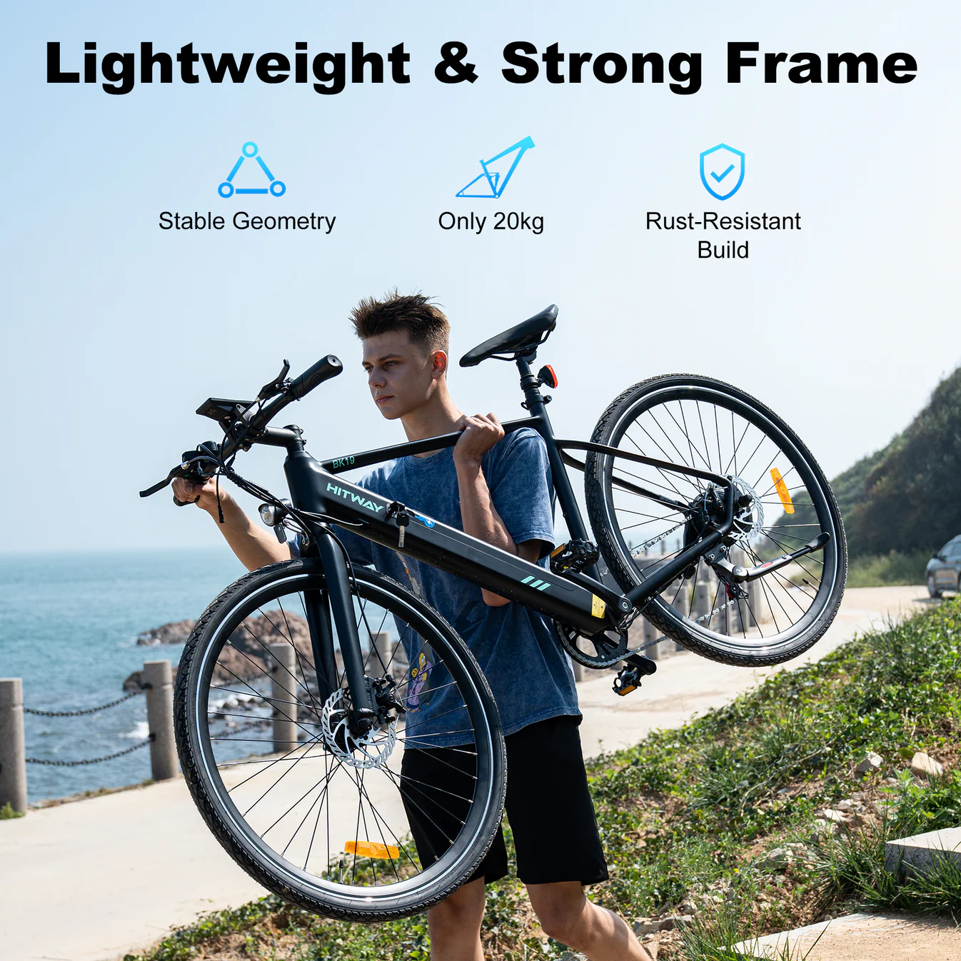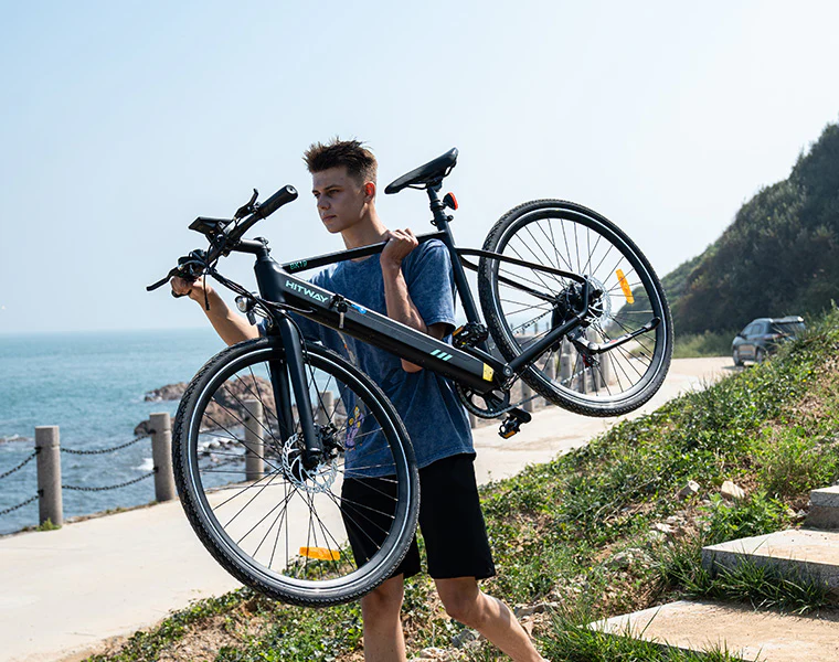 Das HITWAY BK19 E-Bike wiegt nur 20 kg und ist somit außergewöhnlich leicht und einfach zu tragen. Es besteht aus einer robusten Aluminiumlegierung und vereint Robustheit mit geringem Gewicht, sodass es auch unterwegs bequem zu handhaben ist.