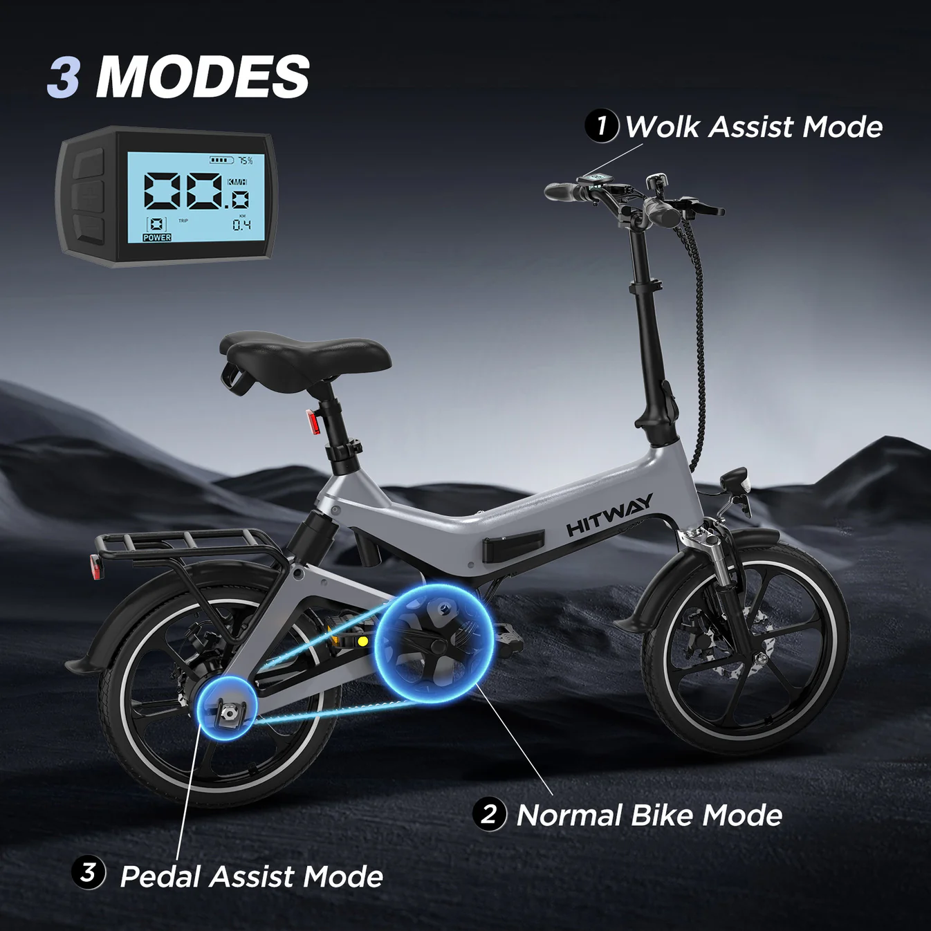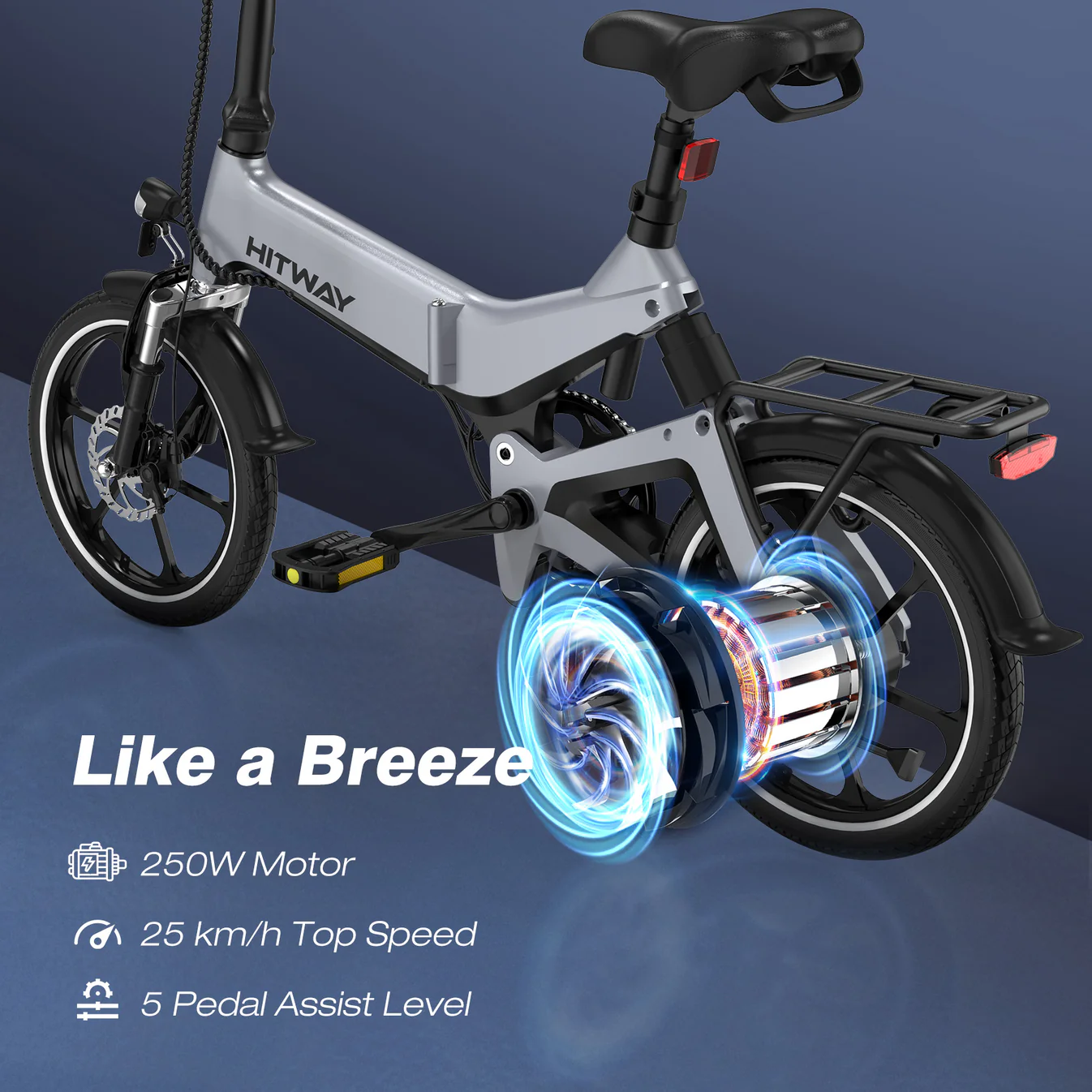 Das HITWAY BK2 E-Bike verfügt über einen leistungsstarken 250-W-Motor und einen fünfstufigen Tretunterstützungsmodus, mit dem Sie Ihr Fahrerlebnis an Ihre Vorlieben und das Gelände anpassen können. Wählen Sie die perfekte Unterstützungsstufe für müheloses Pendeln oder anspruchsvolle Fahrten.