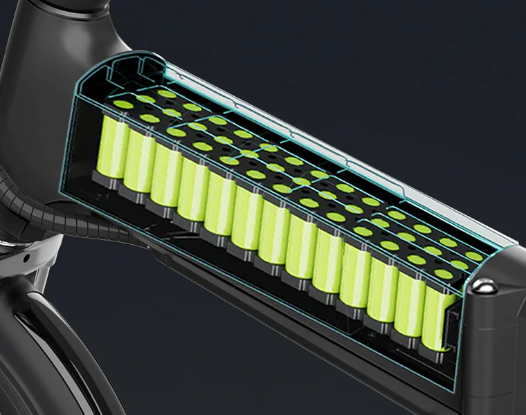 Unser clever konzipierter, versteckter Akku ist sicher im Rahmen integriert und bietet zusätzliche Sicherheit. Nach dem Zusammenklappen des Fahrrads lässt er sich zur sicheren Aufbewahrung und zum Schutz vor Diebstahl einfach herausnehmen.