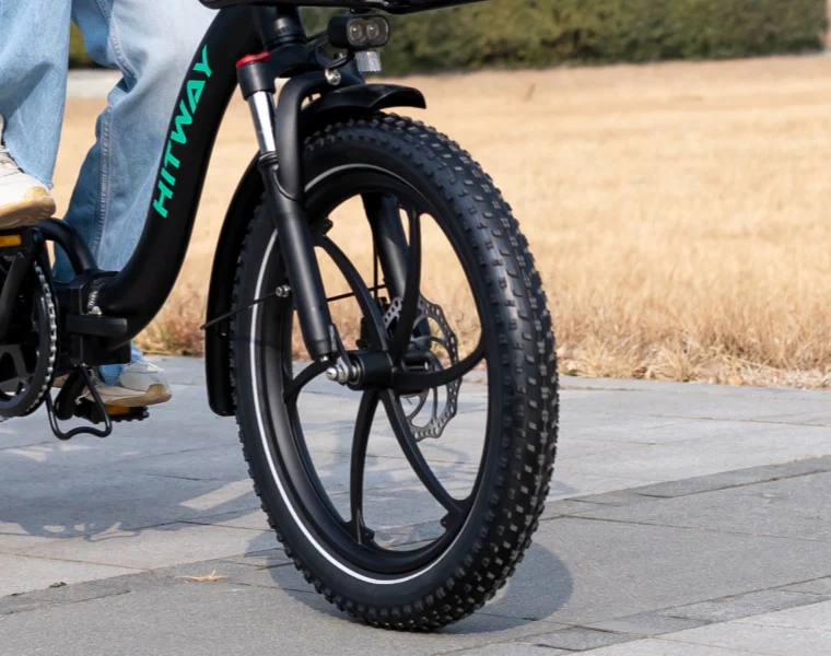 The 3.0-inch tires on this e-bike are wider than traditional e-bike tires and provide more stability and traction. They are designed for different types of terrain and increase the versatility and durability of the bike, allowing for a smoother and more controlled ride on different surfaces.