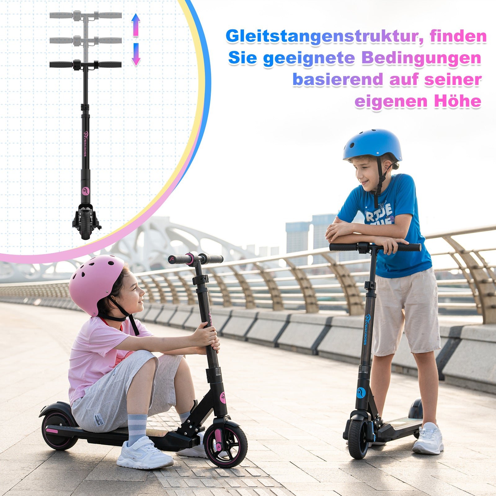 Der Lenker des EV06C Elektrorollers für Kinder kann nach Belieben zwischen 0 und 8 Zoll (ca. 0-20 cm) eingestellt werden, und die Lenkerhöhe liegt zwischen 29 und 37 Zoll (ca. 73-94 cm). Darüber hinaus beträgt die maximale Tragfähigkeit 60 kg, was bedeutet, dass dieser E-Scooter speziell für Kinder im Alter von 6 bis 12 Jahren konzipiert ist.