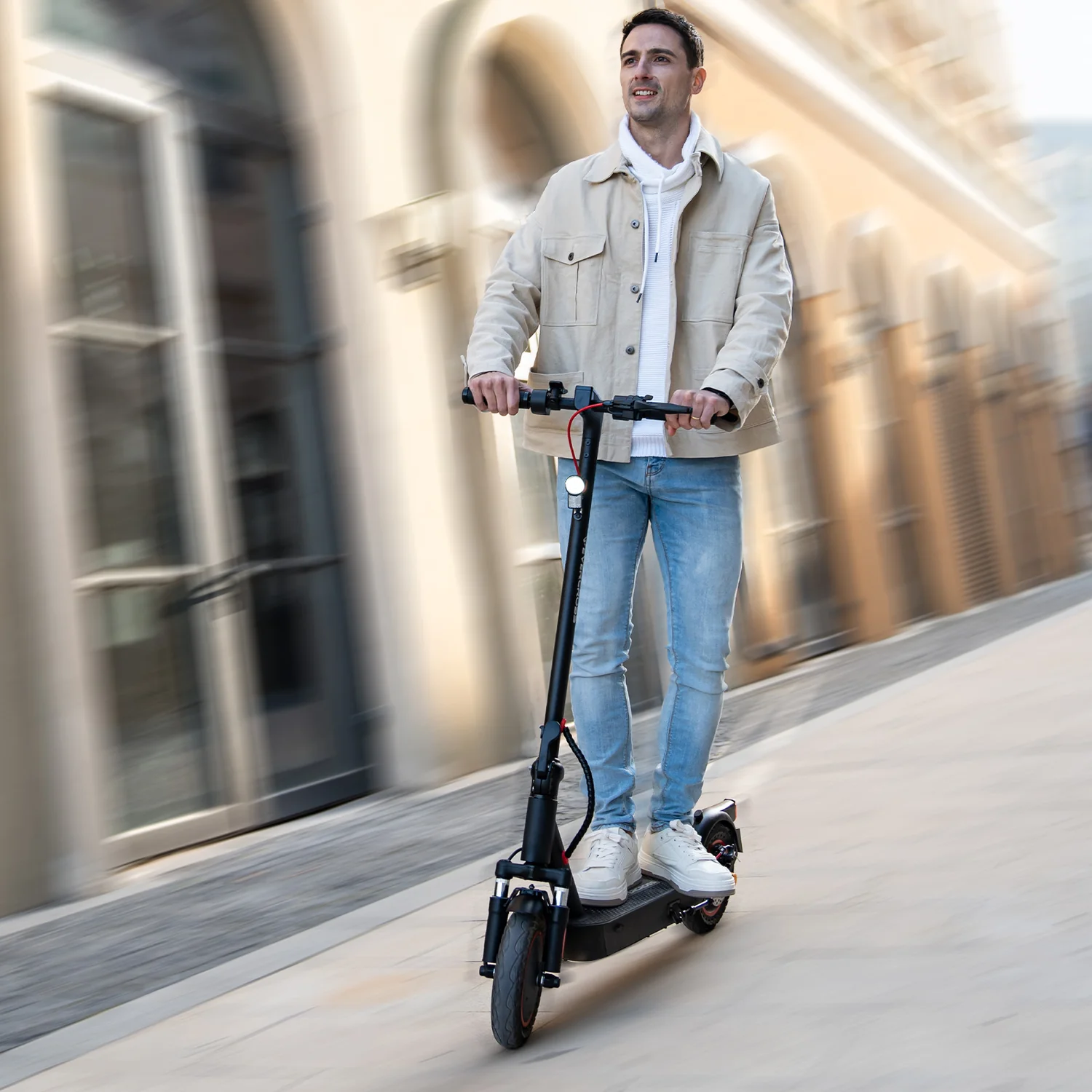 Ausgestattet mit einem 36V 10,4Ah Lithium-Akku, bietet der E-Scooter eine Reichweite von bis zu 30–35 km unter idealen Bedingungen. Die Batterie verfügt über mehrstufigen Schutz wie Temperaturkontrolle, Überspannungsschutz und Ladeüberwachung – sicher und effizient für tägliche Fahrten.
