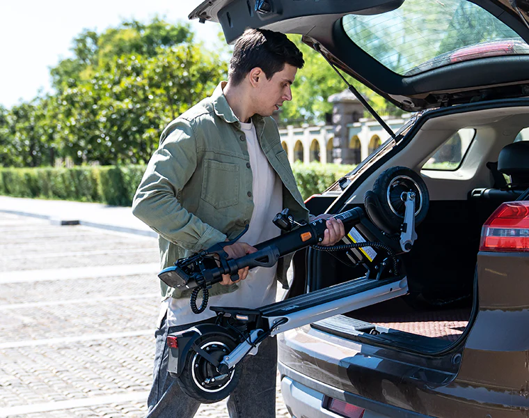 Der Elektroroller lässt sich in nur 1 Sekunde zusammenklappen und besticht durch seinen robusten Rahmen aus hochfester Aluminiumlegierung und Stahl. Dies sorgt für hervorragende Stabilität und eine hohe Tragfähigkeit. Ergonomisch geformte Griffe und das rutschfeste Silikon-Fußpedal erhöhen den Komfort und die Sicherheit während der Fahrt. Das 22 cm breite Pedal bietet zusätzlichen Platz für die Füße und sorgt für ein angenehmeres Fahrgefühl – selbst auf längeren Strecken.