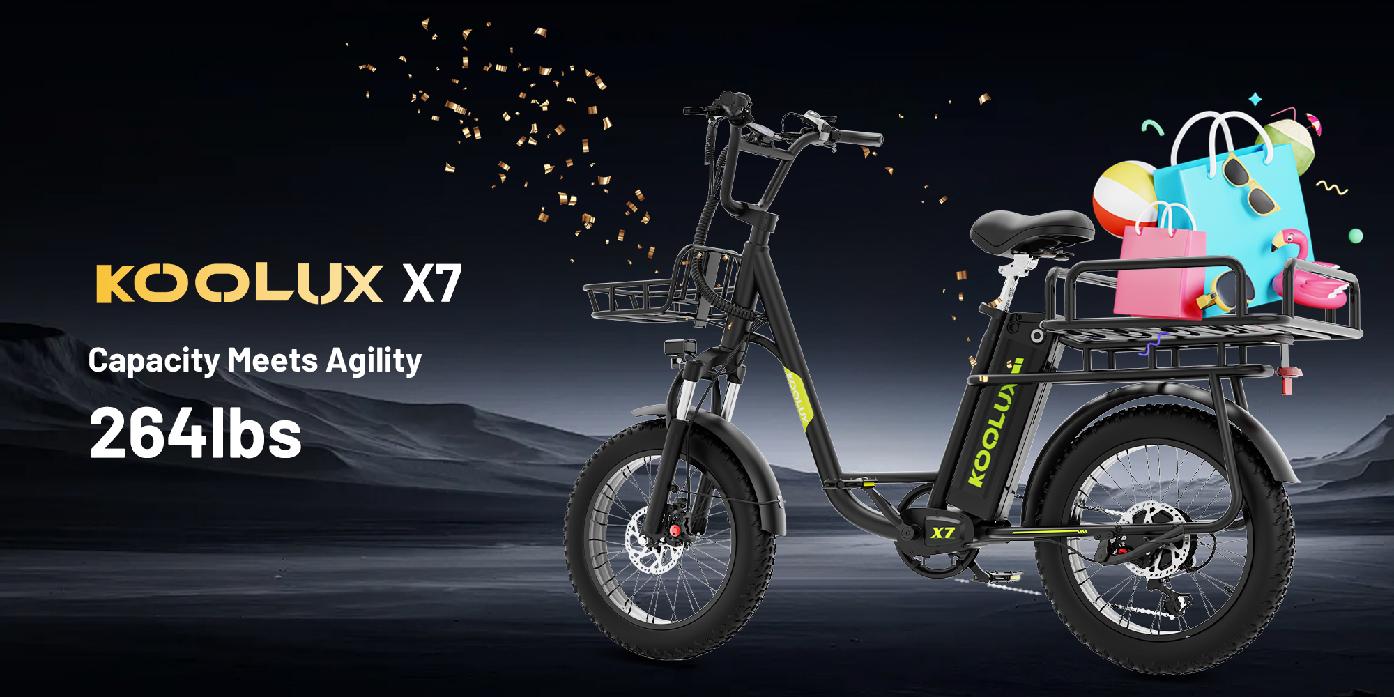 Das KOOLUX X7 Cargo E-Bike ist ideal für alle, die schwere Lasten transportieren möchten. Es eignet sich perfekt für Lieferdienste, Familien und den täglichen Einkauf.