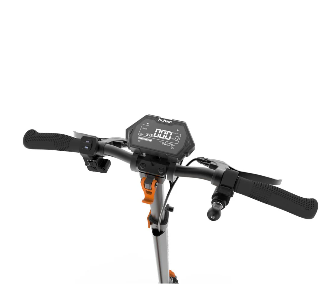 Mit einer Geschwindigkeit von 55 km/h, einer Reichweite von 80 km und einer Vierarm-Stoßdämpfung eignet sich das KuKirin G2 Max hervorragend für die Navigation in unebenem Gelände und für lange Fahrten und bietet mit seinem speziell entwickelten Sitz erhöhten Komfort für ein souveränes Fahrgefühl.